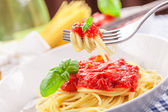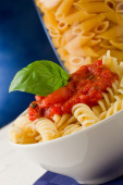 makaron z sosem pomidorowym i bazylią