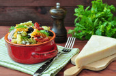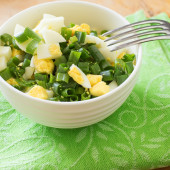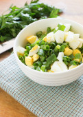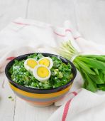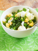 Green posiekane jaja sałatka z ziemniaków, ramson i parmezanem