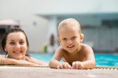 Zdjęcie "Chłopiec z matką w basenie" może być wykorzystywane do celów osobistych i komercyjnych zgodnie z warunkami zakupionej licencji Royalty-free. Obraz jest dostępny do pobrania w jakości wysokiej rozdzielczości do 5760x3840.