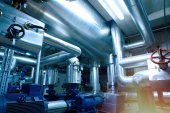 Strefa przemysłowa, rurociągi stalowe, zawory i drabiny
