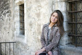 dziewczyna z czarnym szalikiem jest nad morzem na skałach