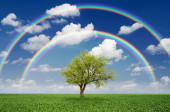 Panorama zielone pole z drzewa