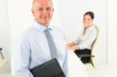 kierownik zespołu seniorów z kolegami z pracy firmy