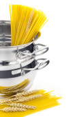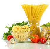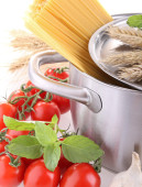 kuchni włoskiej / makaron, pomidory, bazylia, czosnek i patelnia