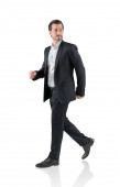 Młody sprzedawca ma zamknięte transakcji. Na białym tle