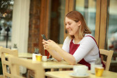 Zdjęcie "Młoda kobieta, picia kawy i użyciu jej silny telefon" może być wykorzystywane do celów osobistych i komercyjnych zgodnie z warunkami zakupionej licencji Royalty-free. Obraz jest dostępny do pobrania w jakości wysokiej rozdzielczości do 5760x3840.