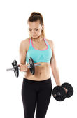 Zdjęcie "Młoda kobieta z hantlami sprawny" może być wykorzystywane do celów osobistych i komercyjnych zgodnie z warunkami zakupionej licencji Royalty-free. Obraz jest dostępny do pobrania w jakości wysokiej rozdzielczości do 5760x3840.