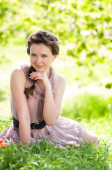 portret romantyczny gorgeous kobieta zawahał się świeżą jasny