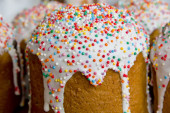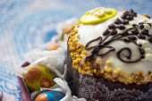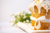 tradycyjne wielkanocne ciasto kulich ukraiński rosyjski na drewniane tła