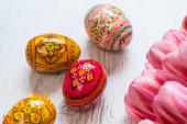 esater tradycyjne ciasto kulich ukraiński rosyjski z kolorowych jaj