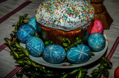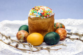 esater tradycyjne ciasto kulich ukraiński rosyjski z kolorowych jaj