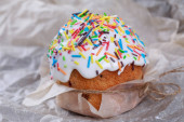 esater tradycyjne ciasto kulich ukraiński rosyjski z kolorowych jaj