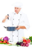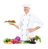 Zdjęcie "Hef przytrzymanie płyta ze świeżych warzyw" może być wykorzystywane do celów osobistych i komercyjnych zgodnie z warunkami zakupionej licencji Royalty-free. Obraz jest dostępny do pobrania w jakości wysokiej rozdzielczości do 5760x3840.