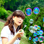 portret śmieszne piękne nastoletnie dziewczyny pompowania kolorowe mydło bu
