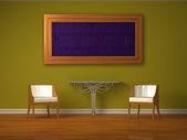 dwa luksusowe fotele z konsoli i obraz rama drewniana w fioletowy wnętrza