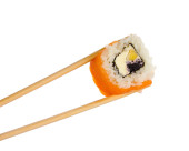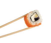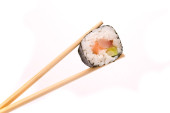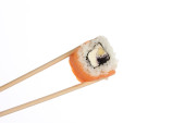 sushi z pałeczkami na białym tle na białym tle