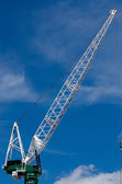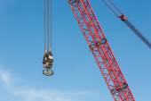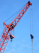 Czerwony Żuraw wysięgnik z hakiem przeciwko blu niebo