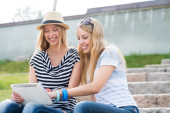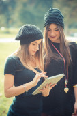 Zdjęcie "dwie dziewczyny przy użyciu komputera typu tablet" może być wykorzystywane do celów osobistych i komercyjnych zgodnie z warunkami zakupionej licencji Royalty-free. Obraz jest dostępny do pobrania w jakości wysokiej rozdzielczości do 5760x3840.