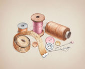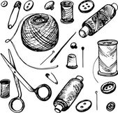 Wzór z ilustracjami narzędzia do szycia