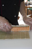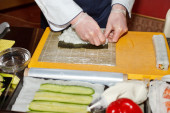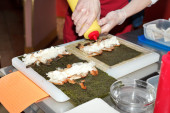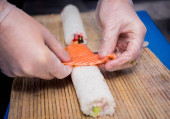 szef kuchni przygotowuje sushi w kuchni