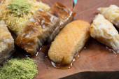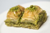 Turecki-arabski deser - baklava z miodem i orzech, orzechy pistacji