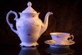 Starym stylu retro dzbanek z herbatą na białym tle