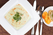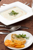 Zdjęcie "zupa szpinak krem z chipsy i placek rybny" może być wykorzystywane do celów osobistych i komercyjnych zgodnie z warunkami zakupionej licencji Royalty-free. Obraz jest dostępny do pobrania w jakości wysokiej rozdzielczości do 5760x3840.
