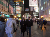 Tłum ludzi w stolicy Seulu w Korei Południowej jako miejski scena w