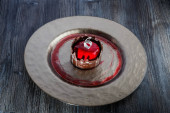 Miska w kształcie gwiazdy hummus na drewnianym stołem
