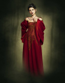 Kobieta w królewski strój i złote Korona