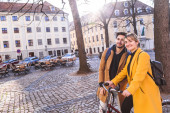 Zdjęcie "Kameralny moment radosnej zakochanej pary lgbt stojącej razem na ulicy w europejskim mieście" może być wykorzystywane do celów osobistych i komercyjnych zgodnie z warunkami zakupionej licencji Royalty-free. Obraz jest dostępny do pobrania w jakości wysokiej rozdzielczości do 5760x3840.