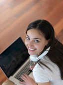 Zdjęcie "Kobieta w domu pracy na komputerze przenośnym" może być wykorzystywane do celów osobistych i komercyjnych zgodnie z warunkami zakupionej licencji Royalty-free. Obraz jest dostępny do pobrania w jakości wysokiej rozdzielczości do 5760x3840.