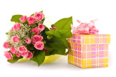 wspaniały bukiet gerbera i obecnych skrzynek na białym