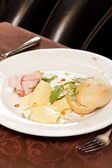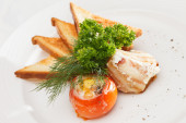 jajko w koszulce z boczkiem i grzankami