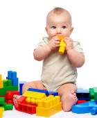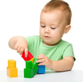 mały chłopiec z budynek cegieł