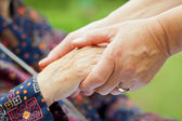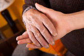 babcia i wnuczka, trzymając się za ręce.