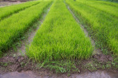 Pole Paddy i młode drzewo ryżowe