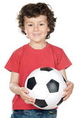 Chłopiec ubrany w koszulę piłki nożnej piłki nożnej