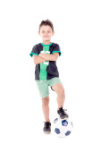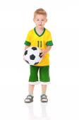 Chłopiec ubrany w koszulę piłki nożnej piłki nożnej