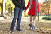 Młoda para spaceru w parku wśród drzew