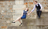 miłości para bieganie i skakanie za pośrednictwem łańcucha