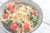 Lunghi Fusilli z serem i pomidorami koktajlowymi
