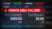 Sygnał ostrzegawczy awarii sieci elektrycznej na liczniku, przerwa w zasilaniu, awaria. Awaria elektrowni, ogromna awaria, burza