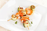 Szaszłyk z krewetek z warzyw