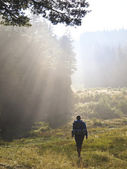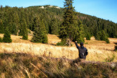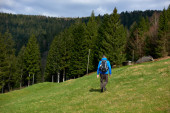 Zdjęcie "Dziewczyna z pies idzie wzdłuż ścieżki górskie wśród x lasu słup Trekking w porannej mgle" może być wykorzystywane do celów osobistych i komercyjnych zgodnie z warunkami zakupionej licencji Royalty-free. Obraz jest dostępny do pobrania w jakości wysokiej rozdzielczości do 5760x3840.