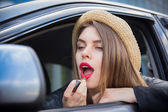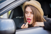 Zdjęcie "kobieta kierowca stawianie szminka" może być wykorzystywane do celów osobistych i komercyjnych zgodnie z warunkami zakupionej licencji Royalty-free. Obraz jest dostępny do pobrania w jakości wysokiej rozdzielczości do 5760x3840.