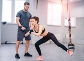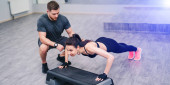 Mężczyzna i kobieta wykonują razem ćwiczenia Plank. Mężczyzna i kobieta demonstrują właściwą formę i pracę zespołową podczas ćwiczeń na desce.