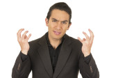 młody przystojny mężczyzna hiszpanin pozowanie skrzyżowane przystanek