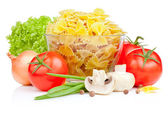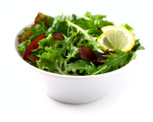 sałatką ze świeżych warzyw w szklanej misce na białym tle
