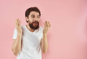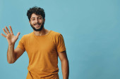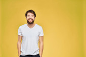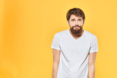 Styl życia przystojny biały casual sukces portret gest broda mężczyźni model facet stojący studio kaukaski młody tło osoba pozytywny sukces atrakcyjny twarz patrząc dorosłych zaufanie wyraz